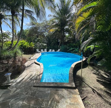 Découvrez un coin de paradis à Sainte-Anne, Guadeloupe. Bienvenue dans notre domaine privé, niché sur 4 000 m² de tranquillité, où les alizés caressent les arbres et les fleurs. Avec 7 gîtes, notre propriété offre le refuge idéal pour une escapade relaxante.